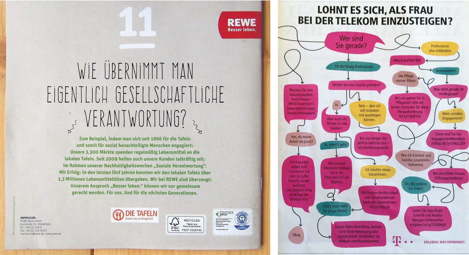| REWE und Telekom.Viel Text bedeutet: Wir haben uns viele Gedanken gemacht und stellen uns euren Fragen: Glaubwürdigkeit, Verantwortung, Gründlichkeit, Transparenz. |